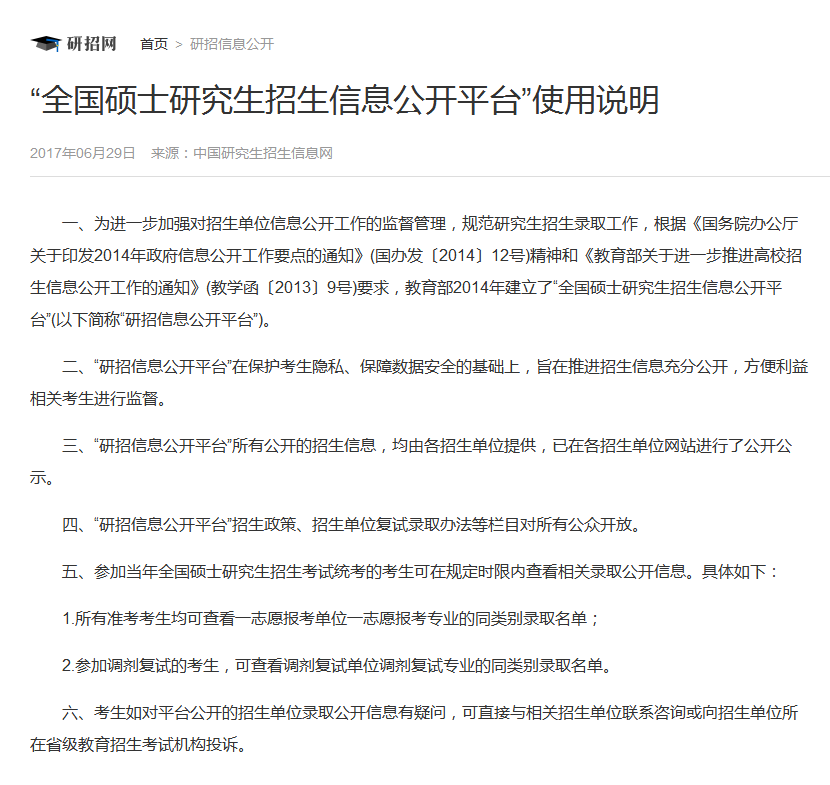 一、研究生招生信息公开平台说明
