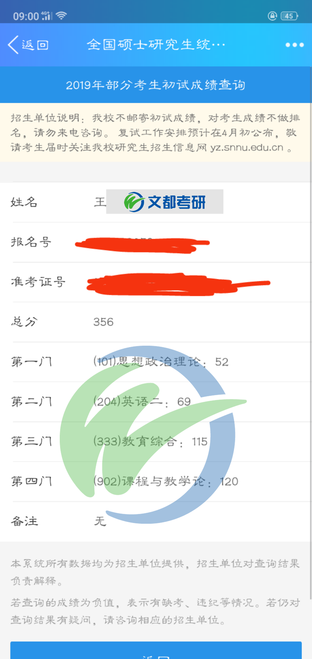 2019全国研究生招生考试初试成绩已于本月15日起陆续公布,西北文都考研2019届考研学子用成绩证明自己过去日以继日的付出并没有白费。近日,西北地区各省市高分学员纷纷发来自己的研究生初试成绩,那一张张兴奋的脸庞洋溢的喜悦,也感染着文都考研的全体老师,文都老师纷纷贺电并表示:只要文都学子如愿进入自己理想的院校,就是对自己最好的回报。接下来,就跟着西北文都考研小编一起看看我们文都考研优秀的学子发来的喜报吧。