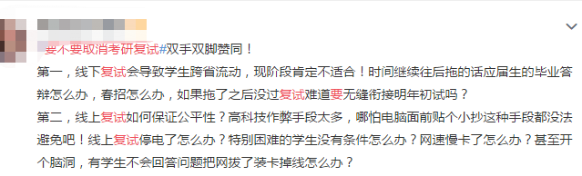 那要不要取消考研复试?这些问题最直观的相关者就是20考研学子,同学们或支持!或反对!