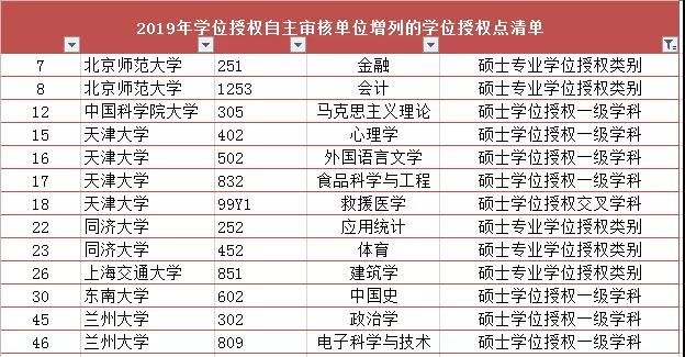 北京师范大学、天津大学、中科院、同济大学、上海交通大学、兰州大学的部分新增专业。
