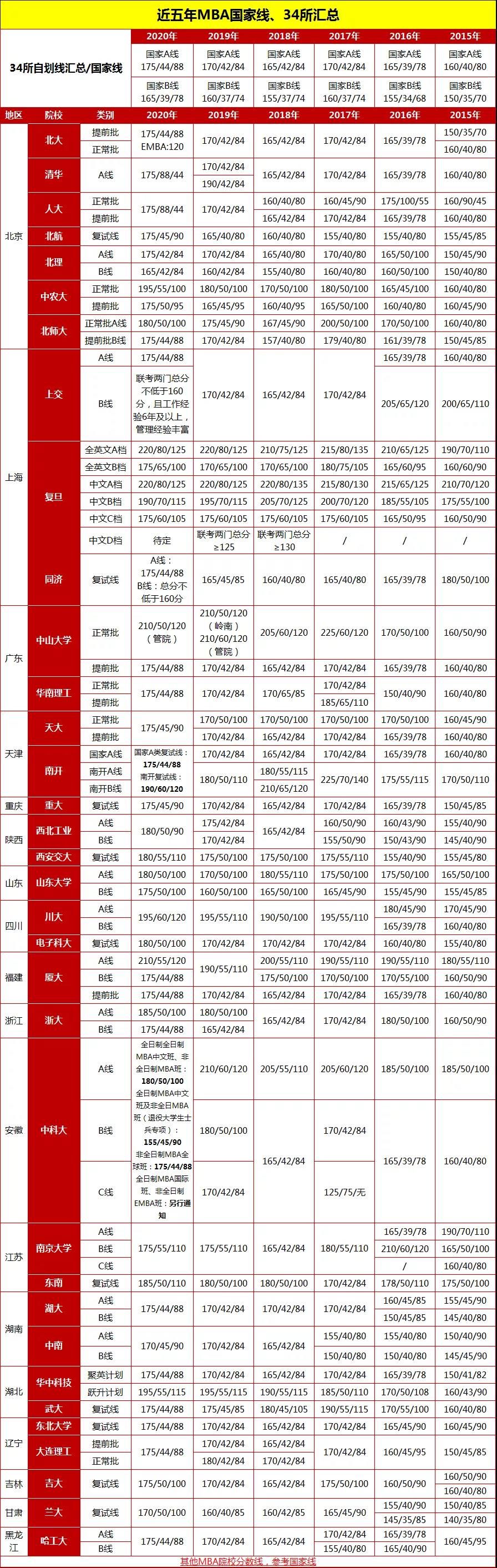 以上是小编为大家整理的“34所MBA2015-2020分数线汇总,21在职考研可参考”的相关内容,希望对大家考研有所帮助!
